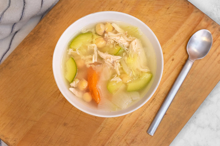 Un clásico reconfortante inspirado en las recetas caseras. Pollo tierno y verduras frescas estofadas en salsa pomodoro, con garbanzos que aportan cuerpo y nutrición.