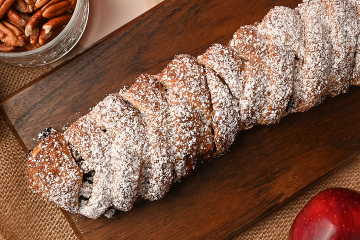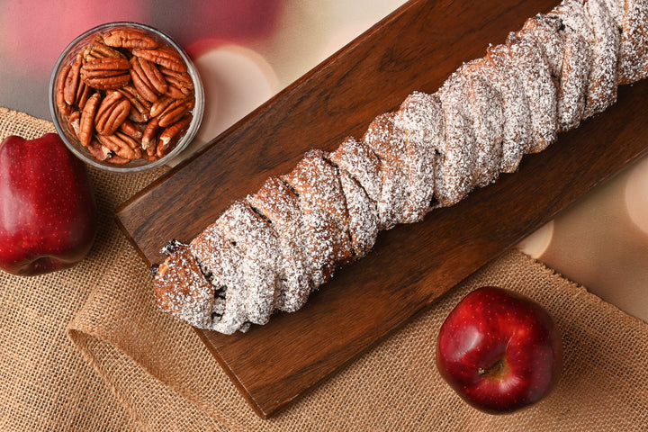 Tarta de hojaldre trenzado, rellena de manzana y caramelo. Un postre navideño que combina tradición y dulzura